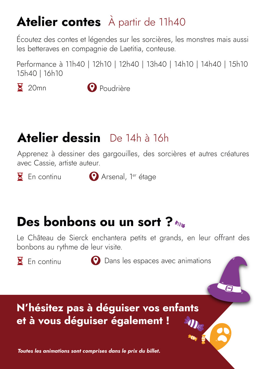 🧙 Contes, légendes et saynètes de sorcellerie, atelier dessin, animation maquillage, et collecte de bonbons seront au rendez-vous pour faire frissonner les plus courageux et émerveiller les plus curieux.