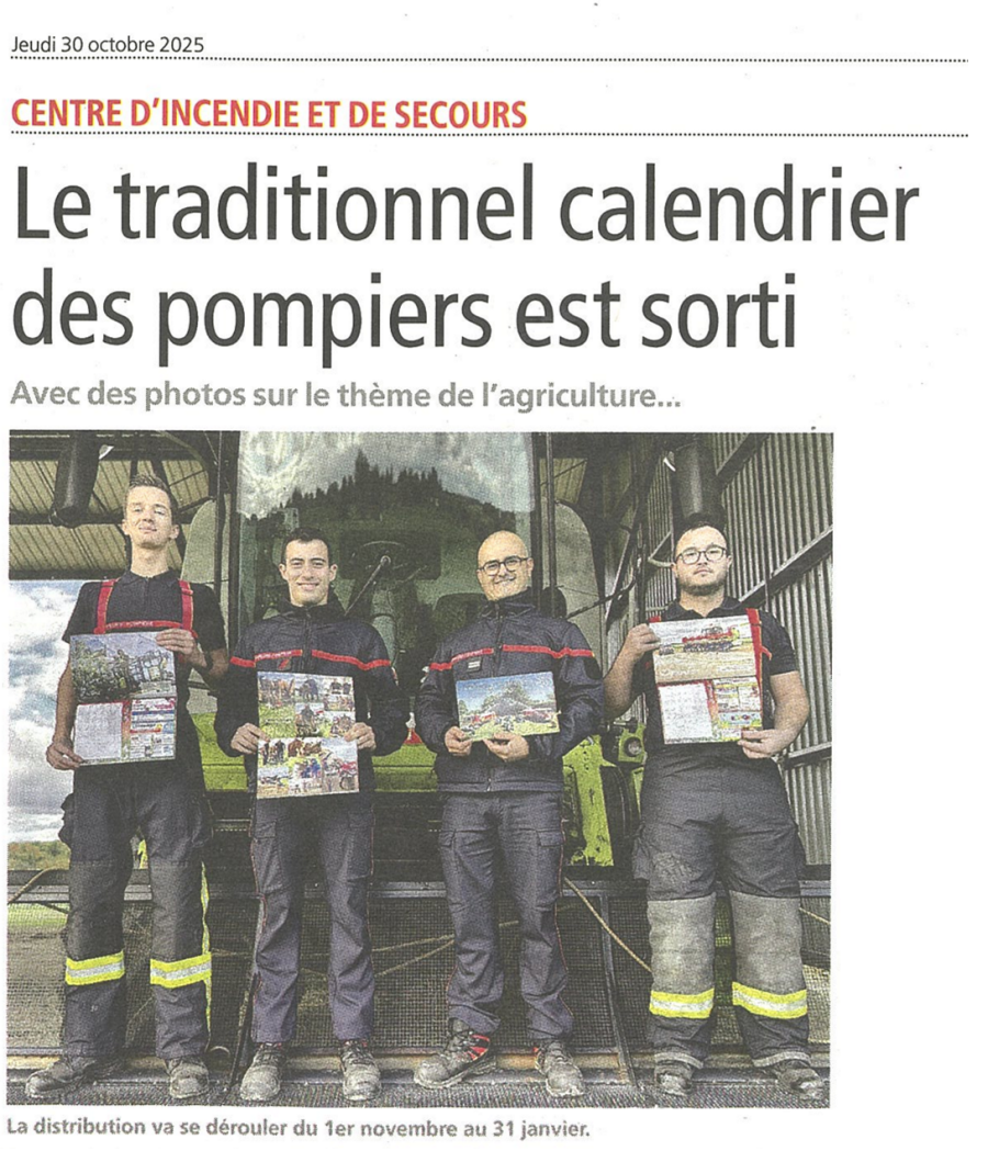 La campagne de distribution des calendriers des sapeurs-pompiers du centre d'incendie et de secours de Ruffec se fera du 1er novembre 2025 au 31 janvier 2026. La distribution s'effectue par les sapeurs-pompiers eux-même, qui se présenteront seul ou en binôme. Nouveauté : vous pourrez désormais faire un don par carte bancaire !