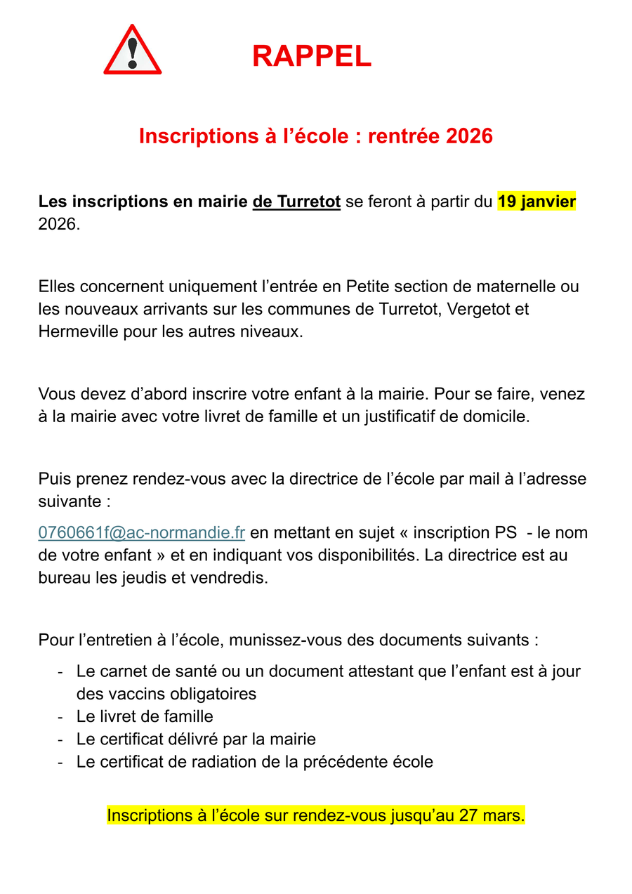 📅Elles se feront jusqu'au 27 mars à la mairie de Turretot.