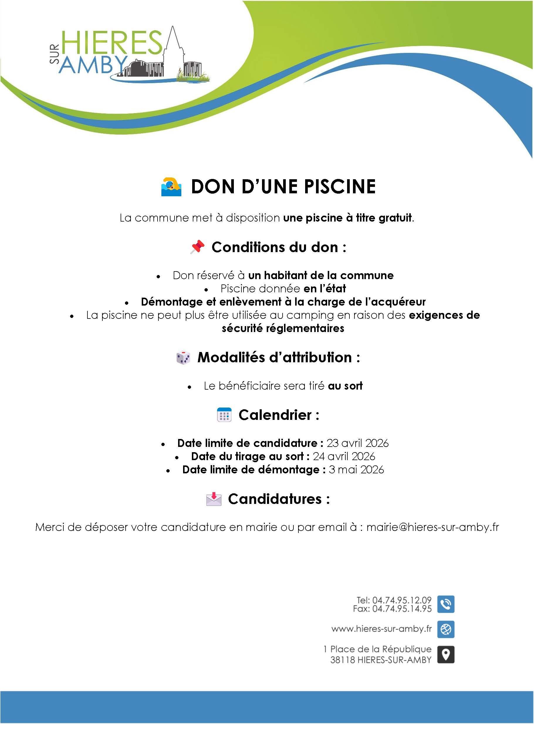La commune fait don d'une piscine (don réservé à un hièrois uniquement)