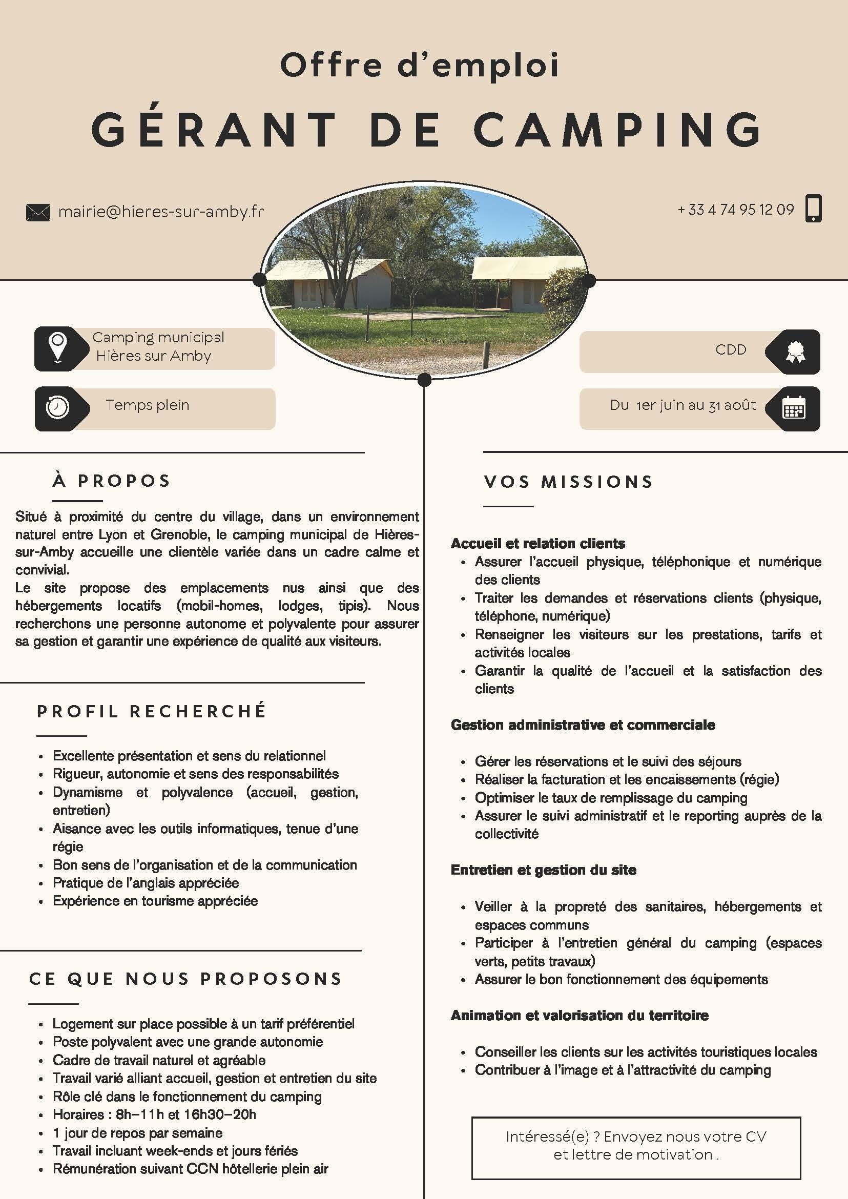Le camping municipal de Hières-sur-Amby recrute