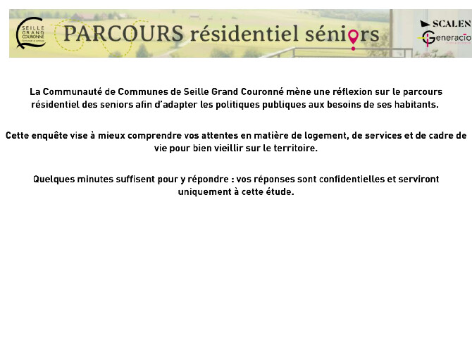 La démarche « Parcours Résidentiels Séniors » a débuté sur l’ensemble de Seille et Grand Couronné, afin de réfléchir ensemble à l’avenir des séniors sur notre territoire en termes d’habitat et de services/soins.