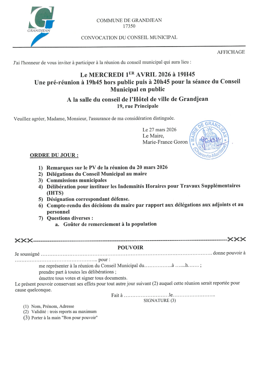 📌 Loulay : mardi 17/03, à 18h à la salle des fêtes municipale