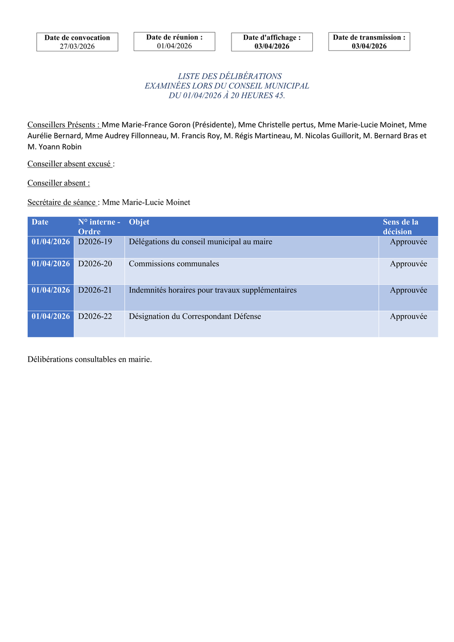 Le secrétariat de la mairie sera fermé les mardi 7 et mercredi 8 avril 2026.