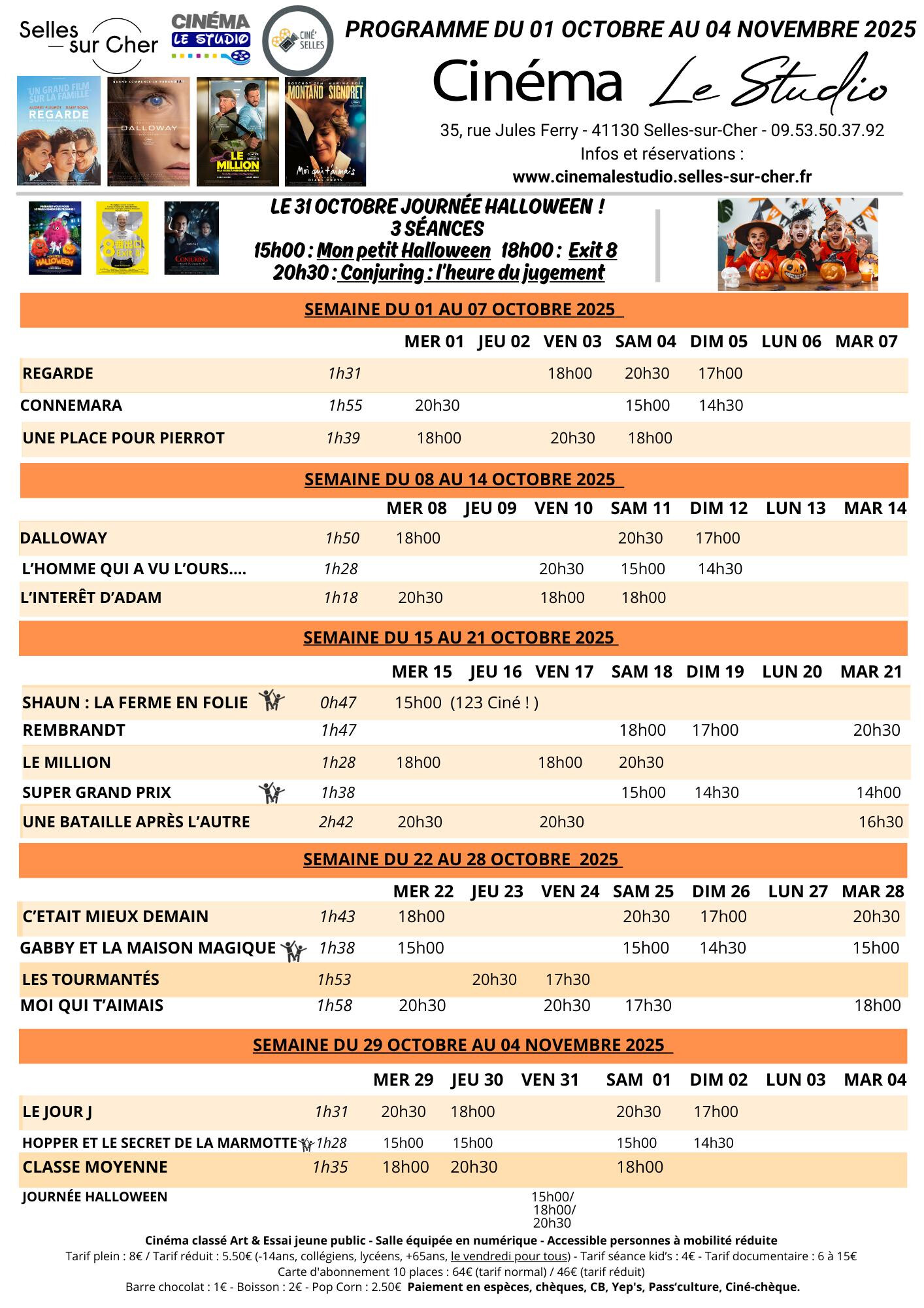 🍿 Au programme cette semaine dans votre Cinéma Le Studio de Selles-sur-Cher.