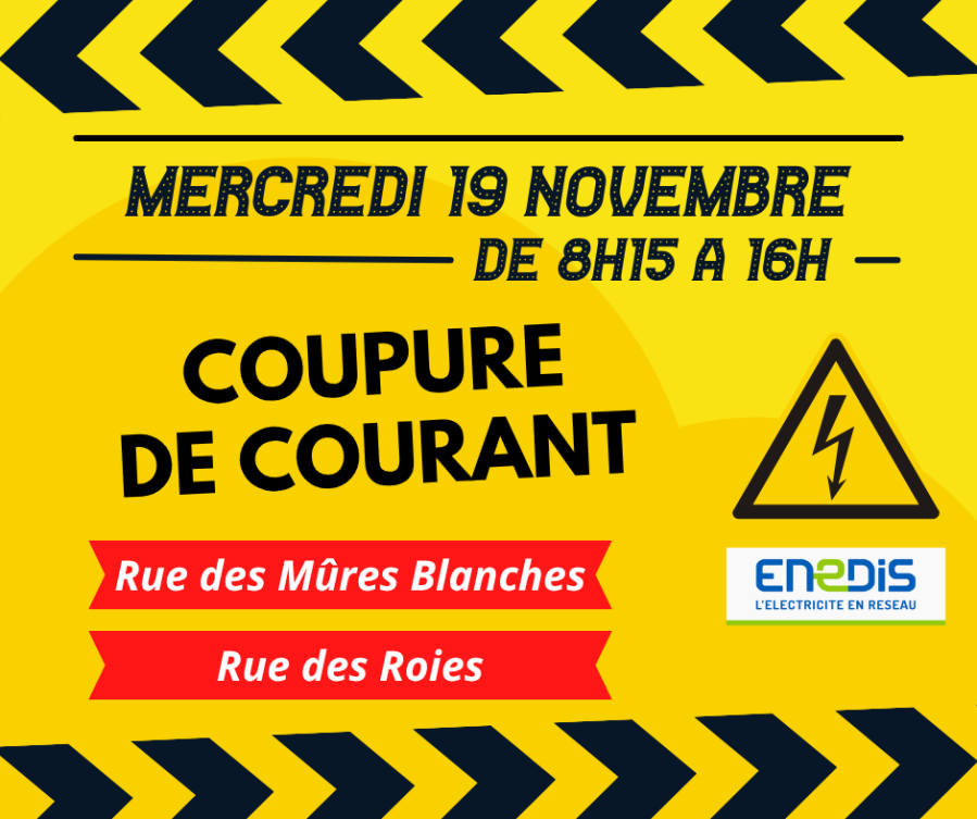 En raison de travaux d'élagage aux abords du réseau électrique, une coupure d'électricité aura lieu mercredi 19 novembre de 8h15 à 16h et concernera les rues suivantes :