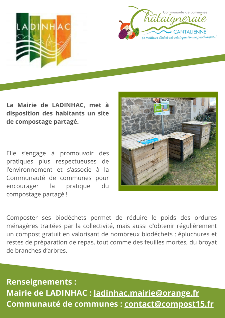 La Mairie de Ladinhac met à votre disposition un site de compostage partagé ouvert à tous