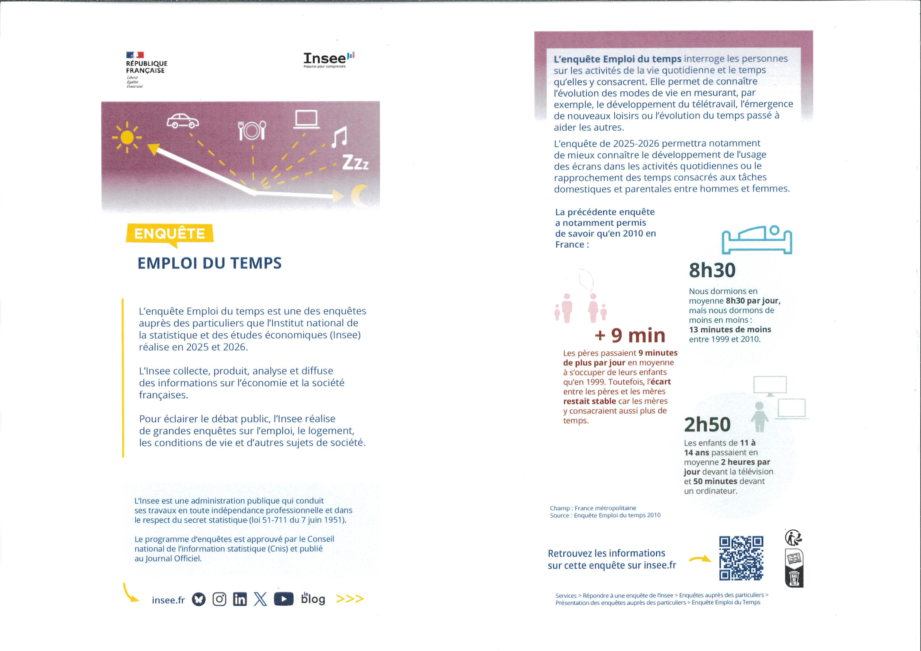 L'institut national de la statistique et des études économiques réalise une enquête statistique de février à avril 2026 sur les ressources et conditions de vie des ménages