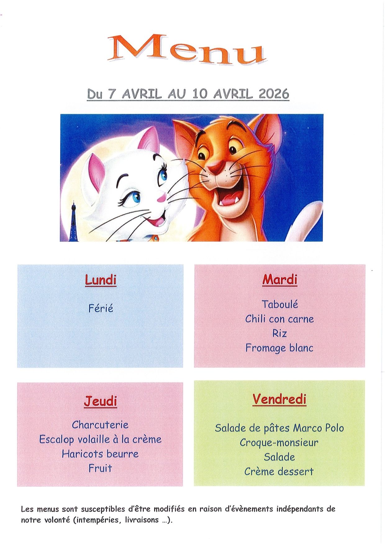 Les horaires sont :