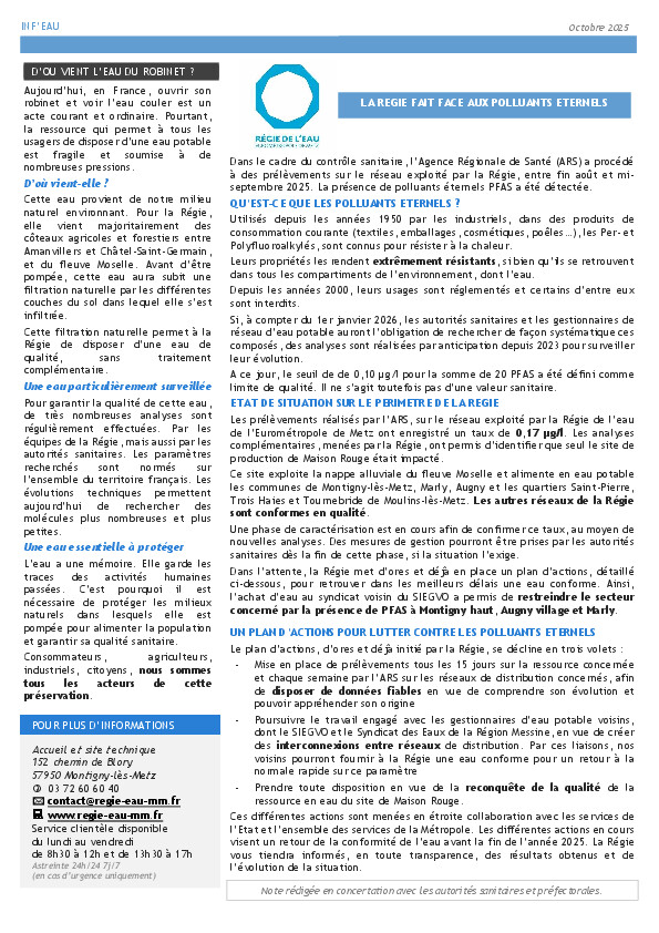 La réparation en urgence d'une fuite d'eau sur la commune de FEY peut entrainer une coupure d'eau imprévue ou des perturbations de la distribution d'eau potable :