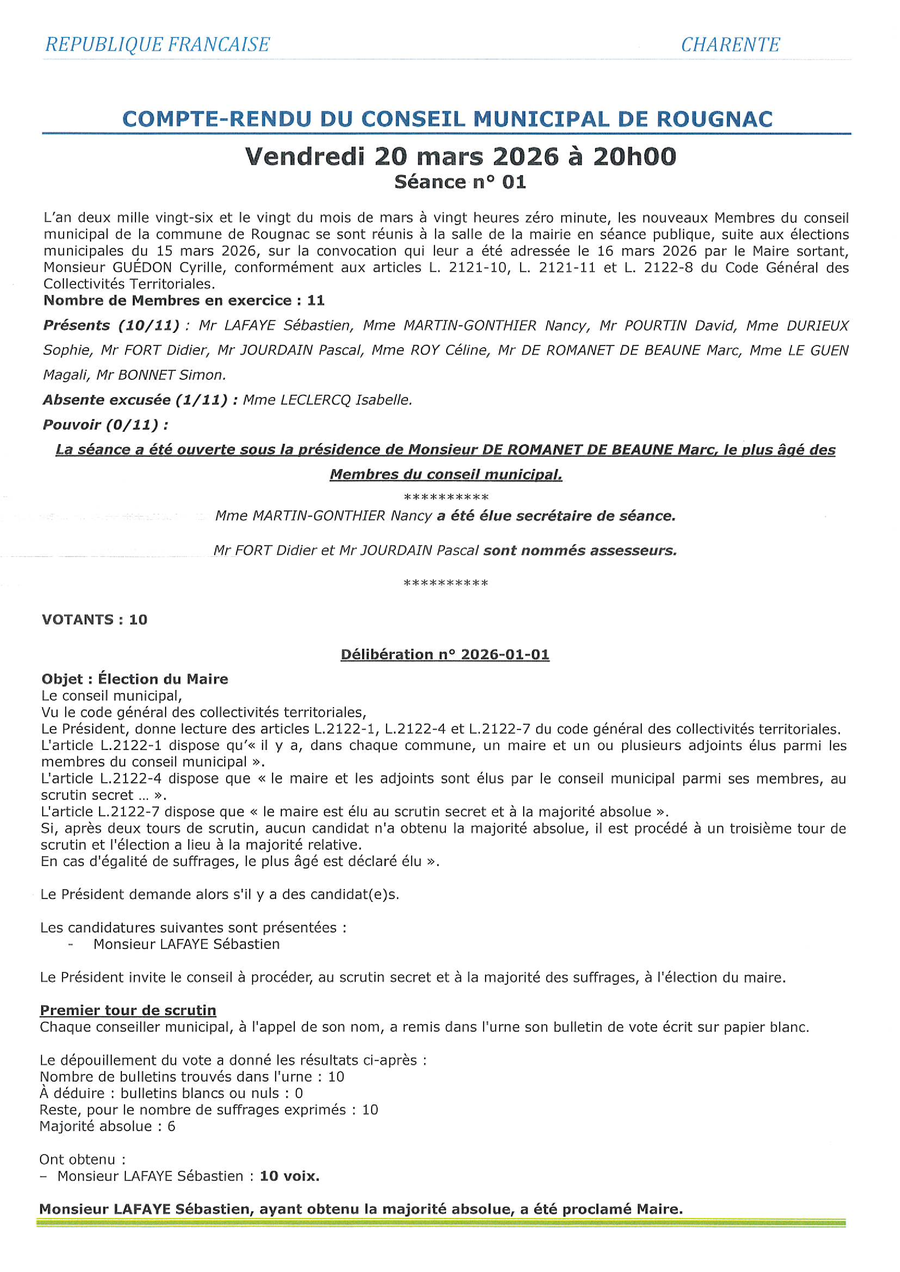 au nom de la MAIRIE DE ROUGNAC