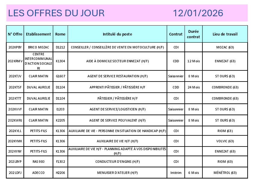 Offres d'emploi - Giat - 63620