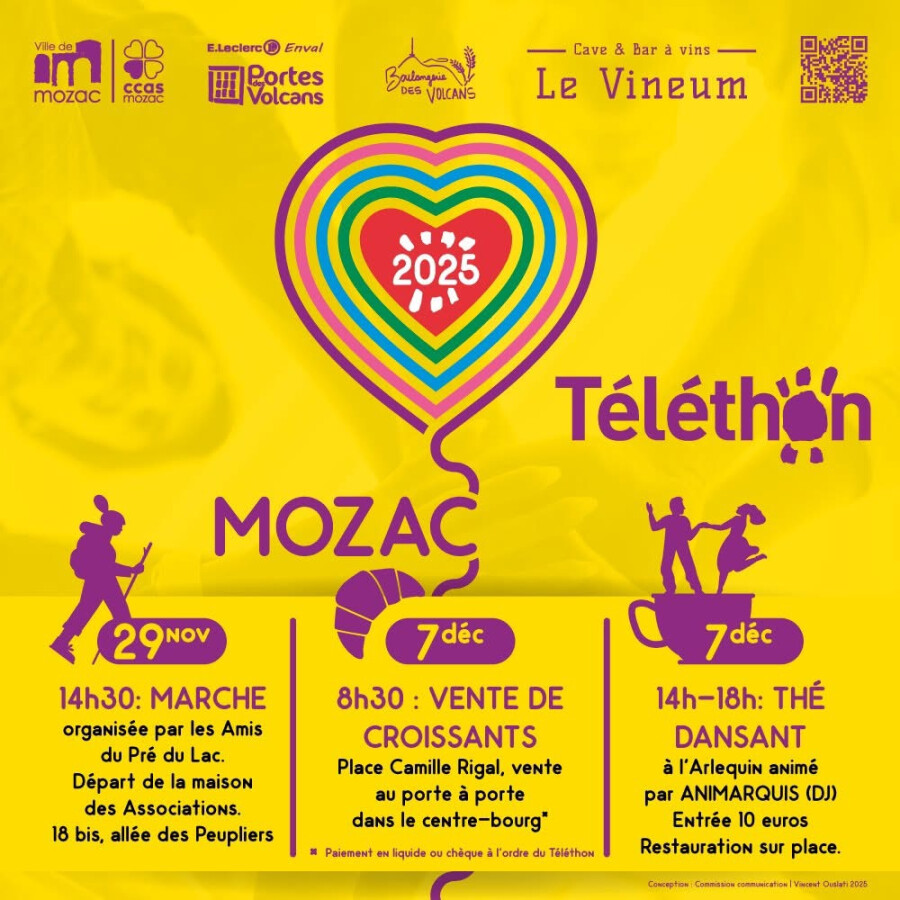 ❤️ Le CCAS et la ville de Mozac participent de nouveau cette année au Téléthon avec plusieurs rendez-vous proposés.