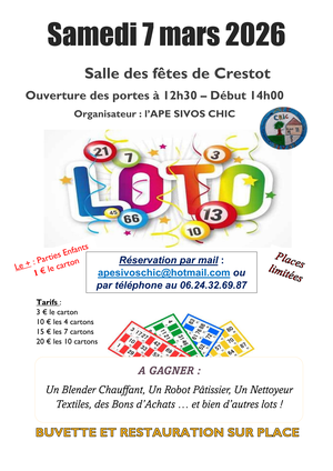 RDV dans la salle polyvalente : ouverture des portes à 19h et début des jeux à 20h, bons d’achats, électroménagers et de nombreux lots à gagner.