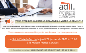 🔹 Permanence ADIL 87 sur RDV de 9h30 à 12h
