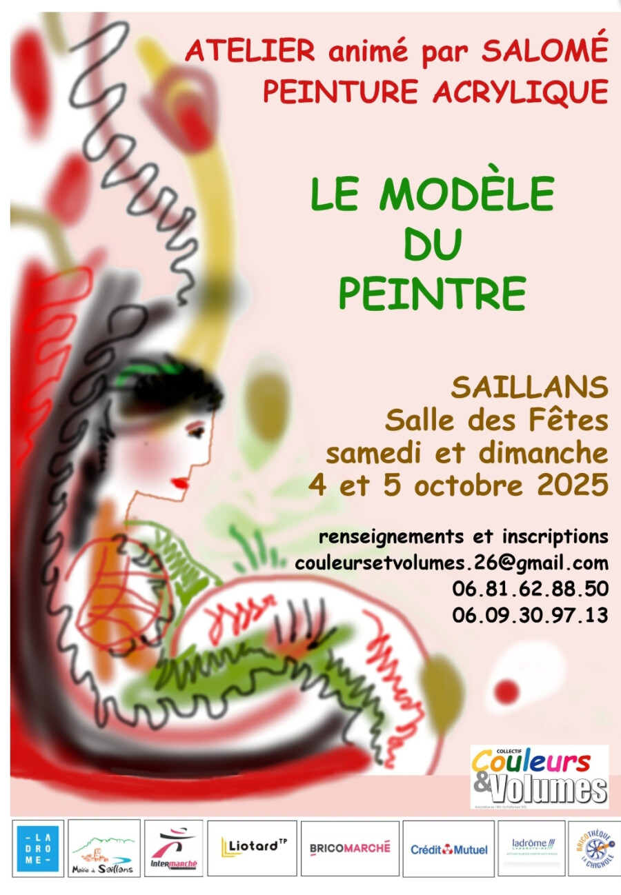 Salomé anime avec bonheur depuis quelques temps pour Couleurs et Volumes, des ateliers tous niveaux de peinture acrylique. Chacun d’eux cible un thème particulier. Le prochain atelier portera sur la peinture d’après modèle (photos).