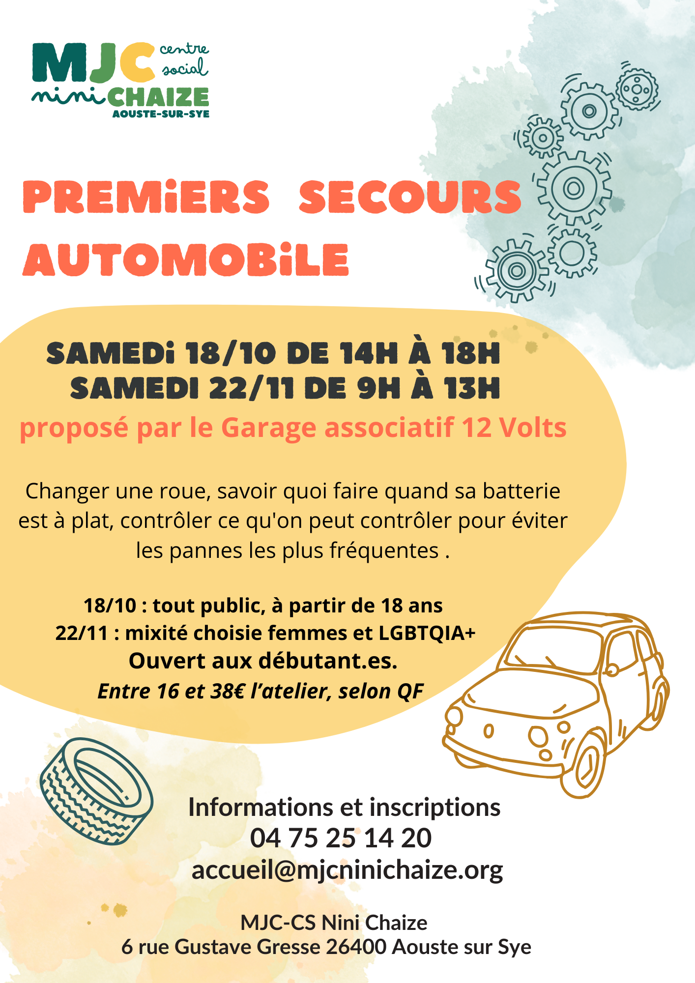 Participation aux frais : 65 € (+ 10€ d’adhésion annuelle).