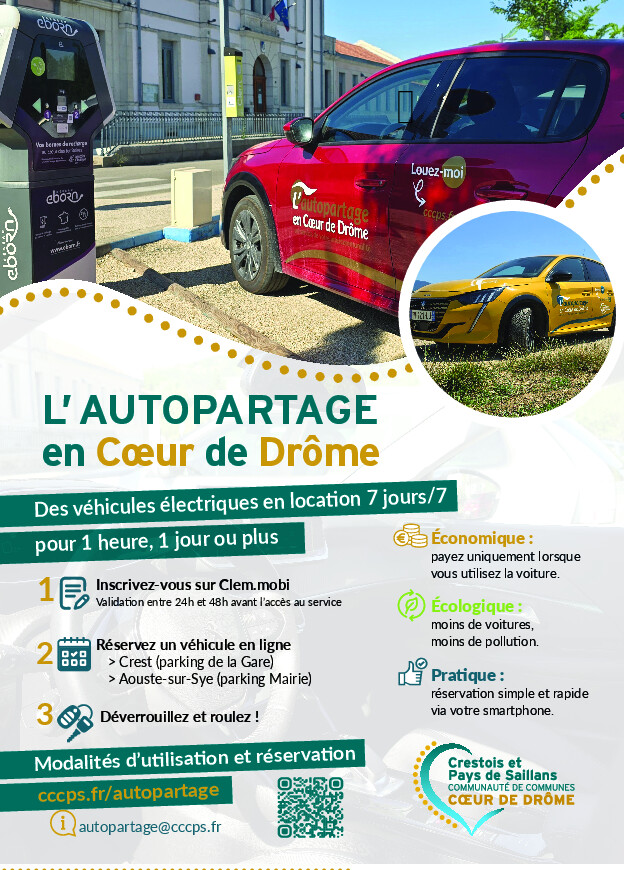 Reprise du service d’autopartage dans la Communauté de Communes du Crestois et du Pays de Saillans – Cœur de Drôme
