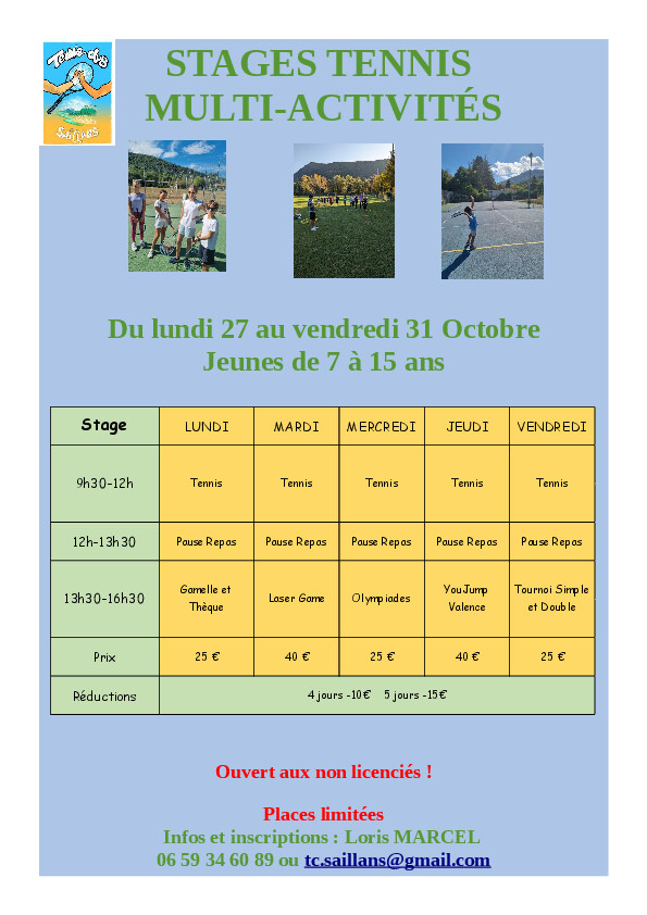 Le prix comprend la fourniture du matériel, les boissons et le repas du samedi midi.