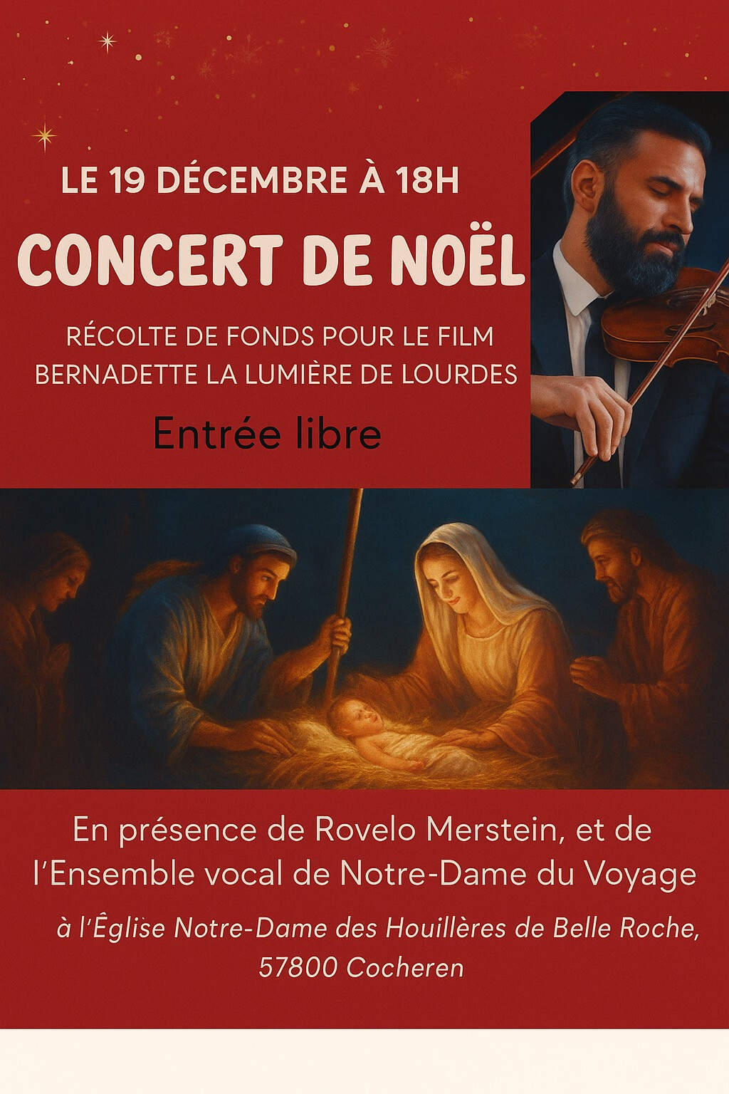Cet événement est organisé dans le cadre d’une récolte de fonds pour le film Bernadette, la Lumière de Lourdes.