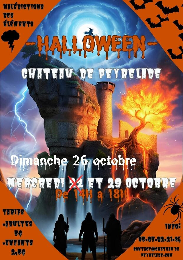 Pour cause de météo défavorable, l'animation HALLOWEEN au Château de Peyrelade prévue le mercredi 22 octobre est décalée au dimanche 26 octobre.