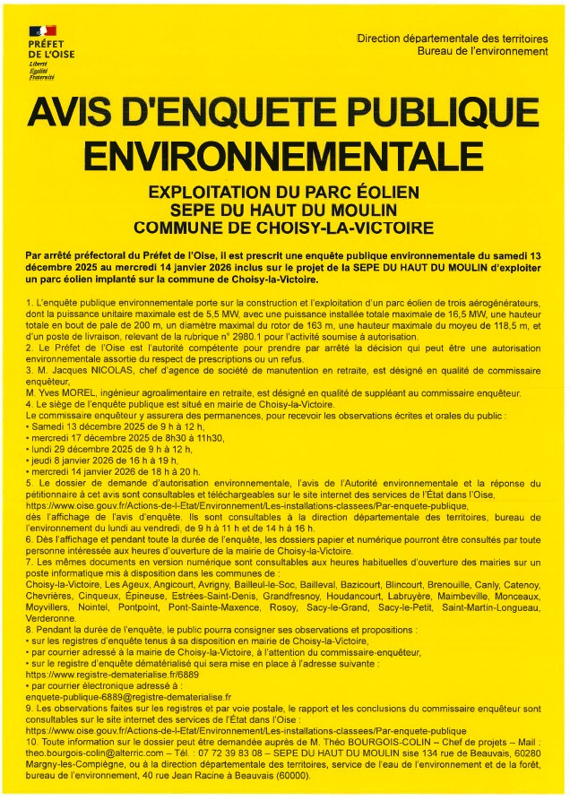 Une enquête publique est ouverte du 13 décembre au 14 janvier 2026, durant laquelle les citoyens sont invités à exprimer leur opposition.
