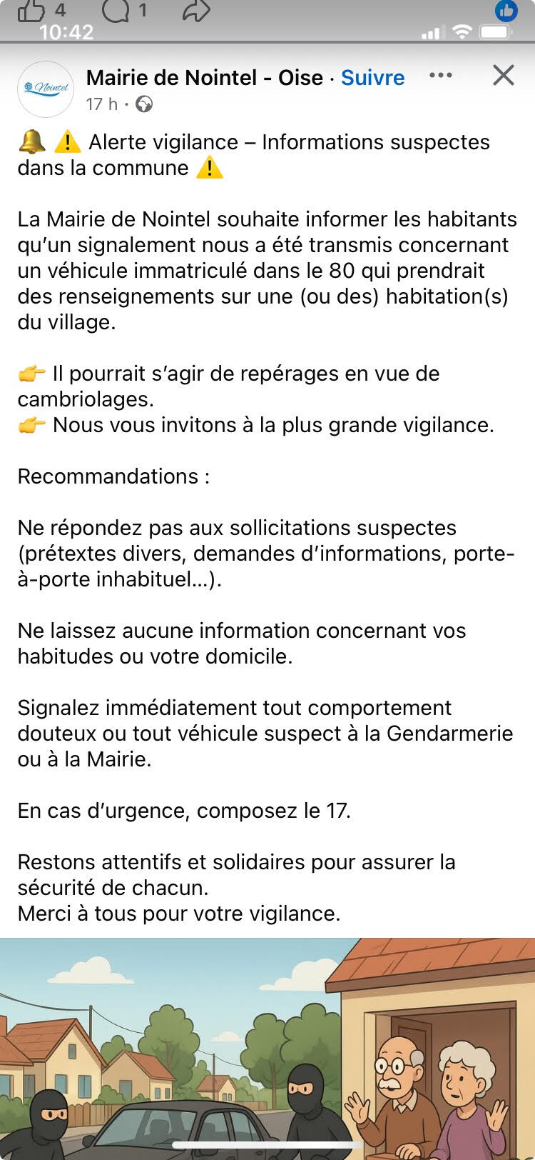 Vous êtes invités à être particulièrement vigilants et attentifs à vos maisons et à vos voisins.