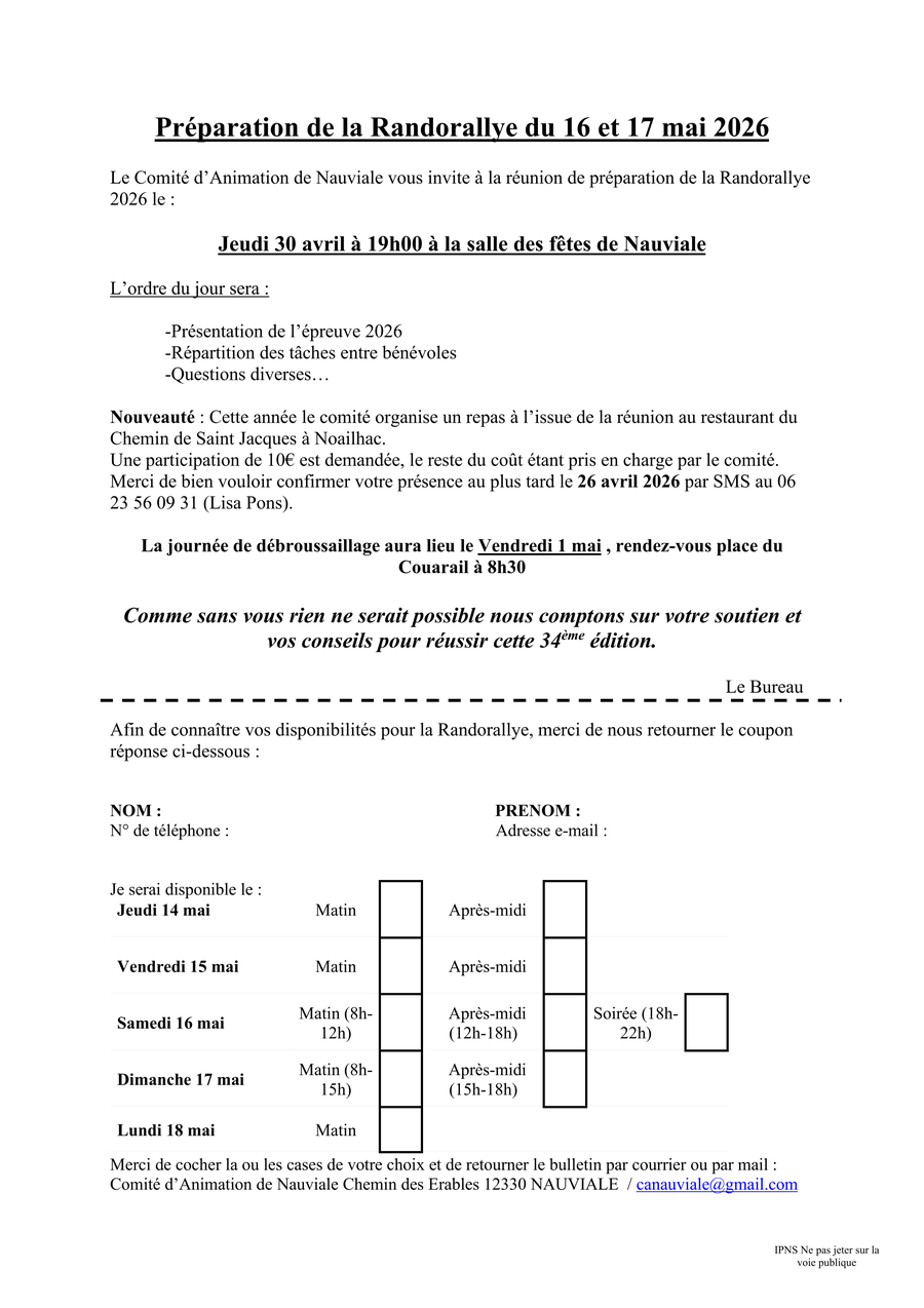 Le CAN vous invite à la réunion de préparation de la 34ème édition de la Randorallye