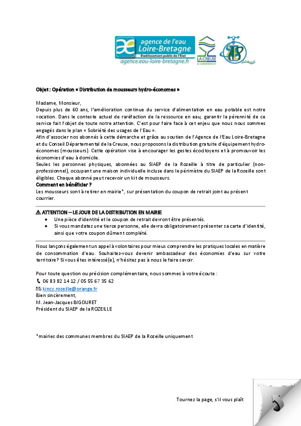 mousseurs hydro-économes vous sera remis