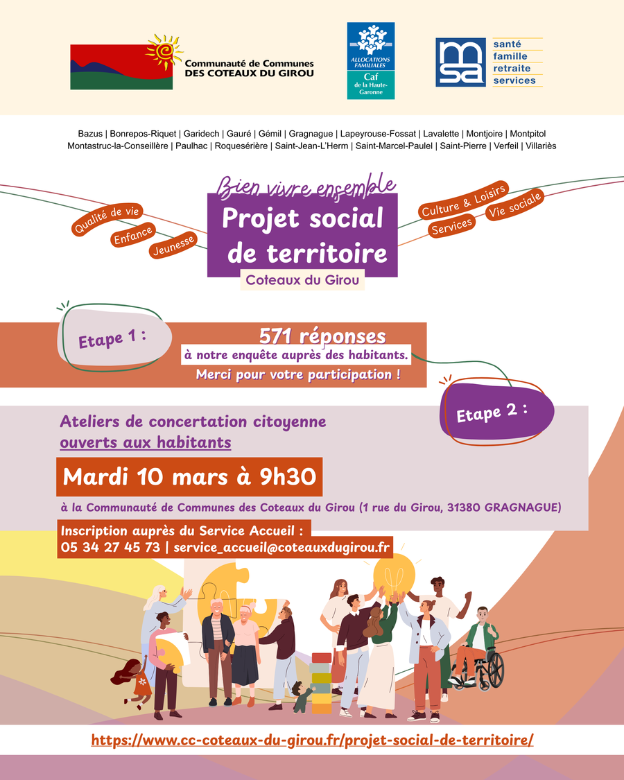 La Communauté de communes des Coteaux du Girou vous invite à participer à son prochain atelier de concertation citoyenne dans le cadre du renouvellement du Projet de territoire.