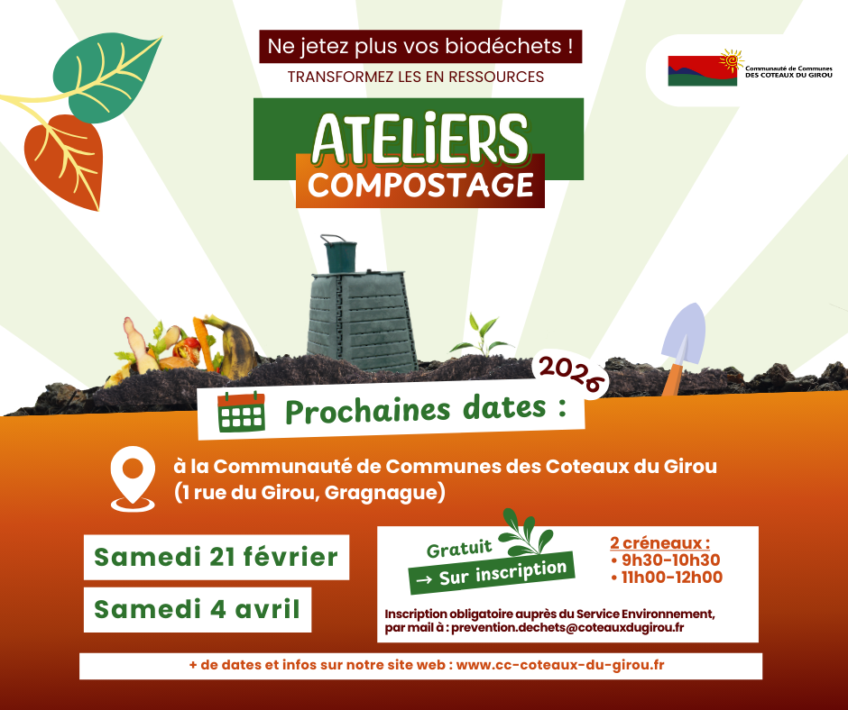 💁 Vous résidez sur le territoire des Coteaux du Girou et vous souhaitez bénéficier de conseils pour vous former aux pratiques du compostage ?
