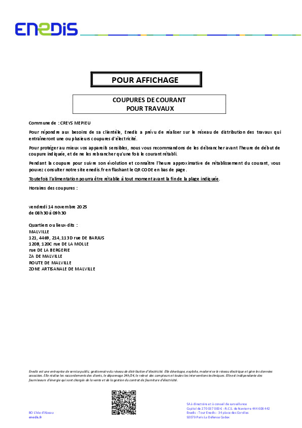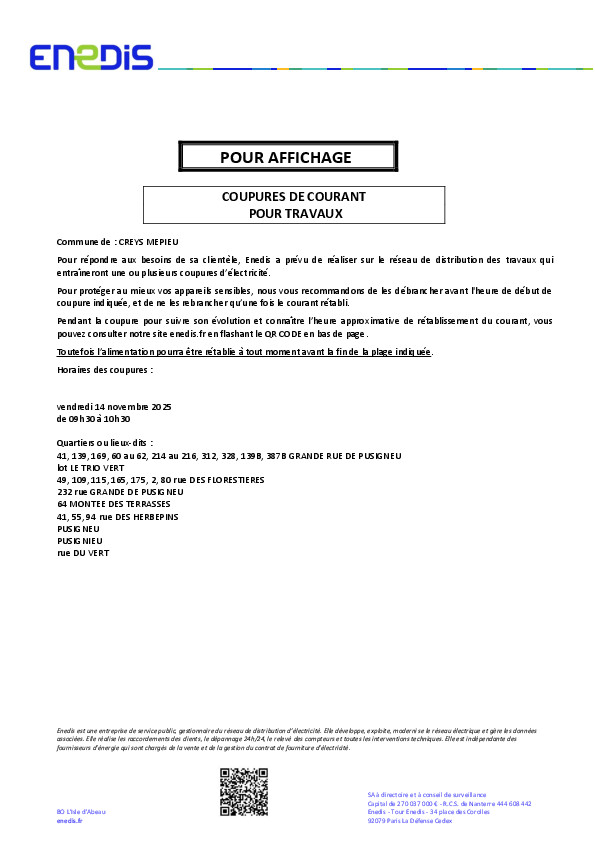 Pour répondre aux besoins de sa clientèle, Enedis a prévu de réaliser sur le réseau