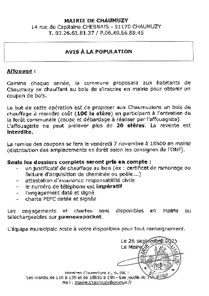 Pour vous inscrire, vous pouvez contacter la mairie au 0326618137 ou par mail : mairie.chaumuzy@orange.fr