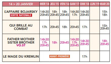 PROGRAMME SEMAINE DU MERCREDI 21 AU MARDI 27 JANVIER 2026 :