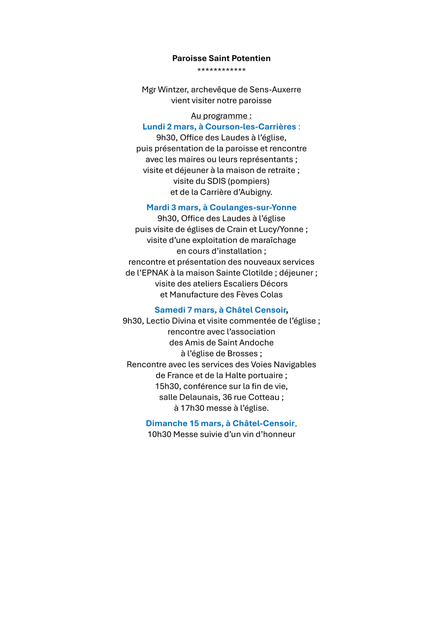 La paroisse Saint-Potentien nous prie d'annoncer :