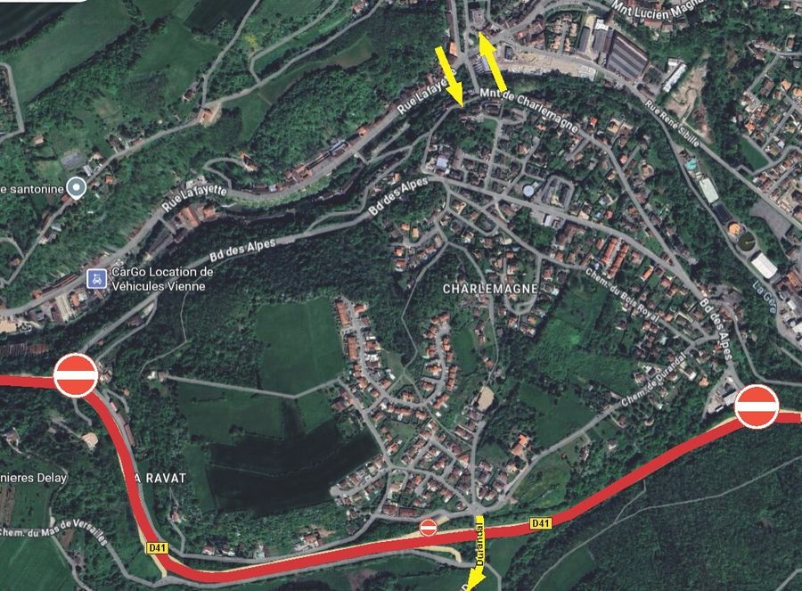 - Pour le secteur de Vienne Charlemagne : seul l’accès par la montée Charlemagne et le carrefour de la Véga sera possible. Des déviations seront installées chaque soir.