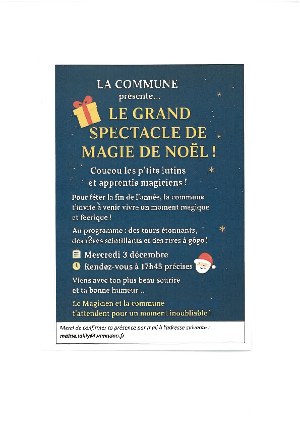 La commune présentera le mercredi 3 décembre 2025, le grand spectacle de magie de Noël.