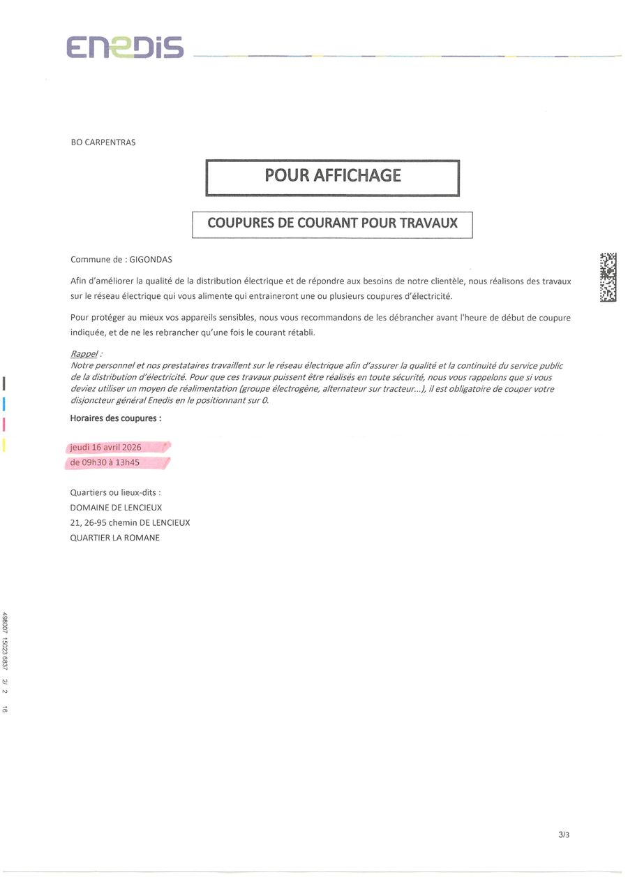 Des perturbations ou coupures temporaires pourront intervenir durant cette période.