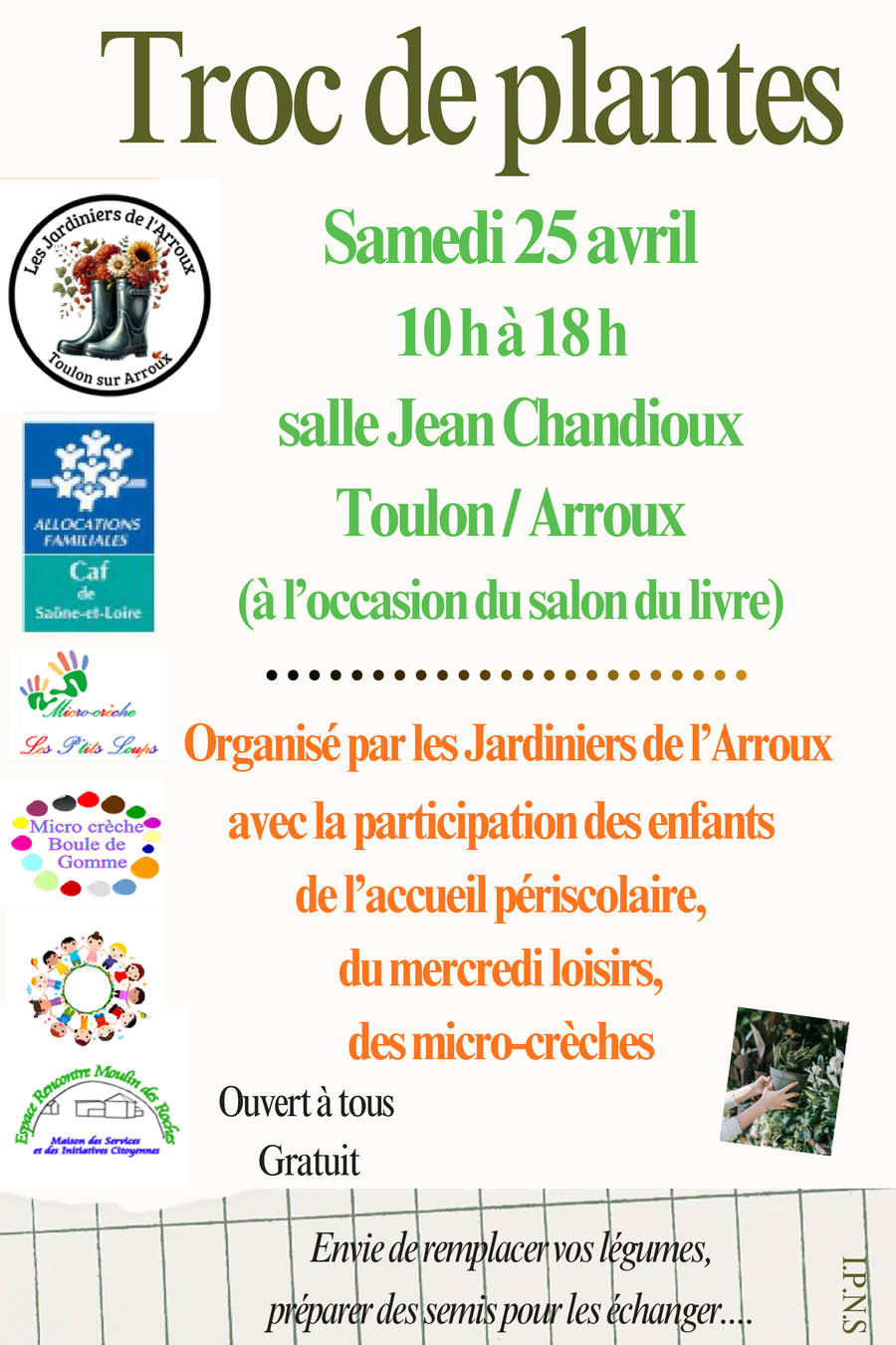 Le collectif des Jardiniers de l'Arroux fait partie des activités d'échanges de savoirs et de pratiques du Moulin des Roches.