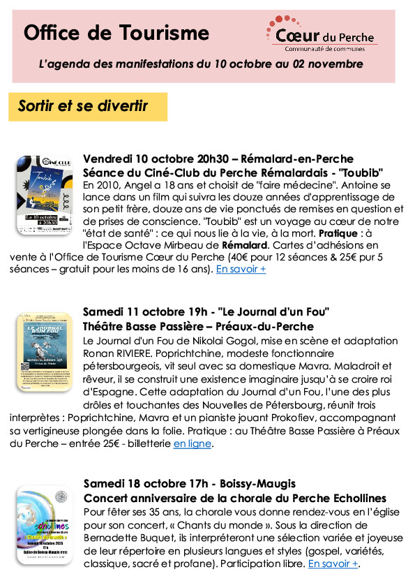 Activités et évènements à ne pas manquer sont dans le nouvel agenda de l'Office de Tourisme.