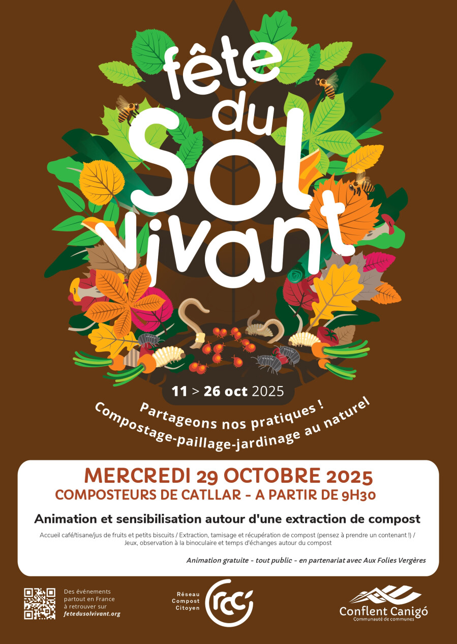 Après deux belles animations de la Fête du Sol Vivant cette semaine à Prades et Vernet-les-Bains, c'est à Catllar que vous pourrez nous retrouver mercredi 29 octobre prochain ! Plus d'infos ci-dessous ;)