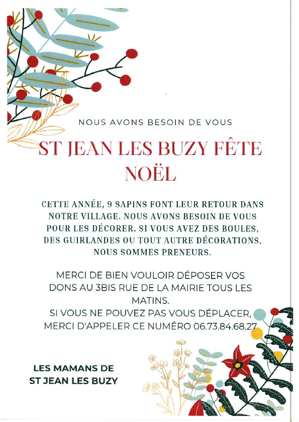 Les électeurs de la commune de St Jean Les Buzy sont convoqués le Dimanche 14 décembre 2025 à l'effet d'élire quatre conseillers municipaux.