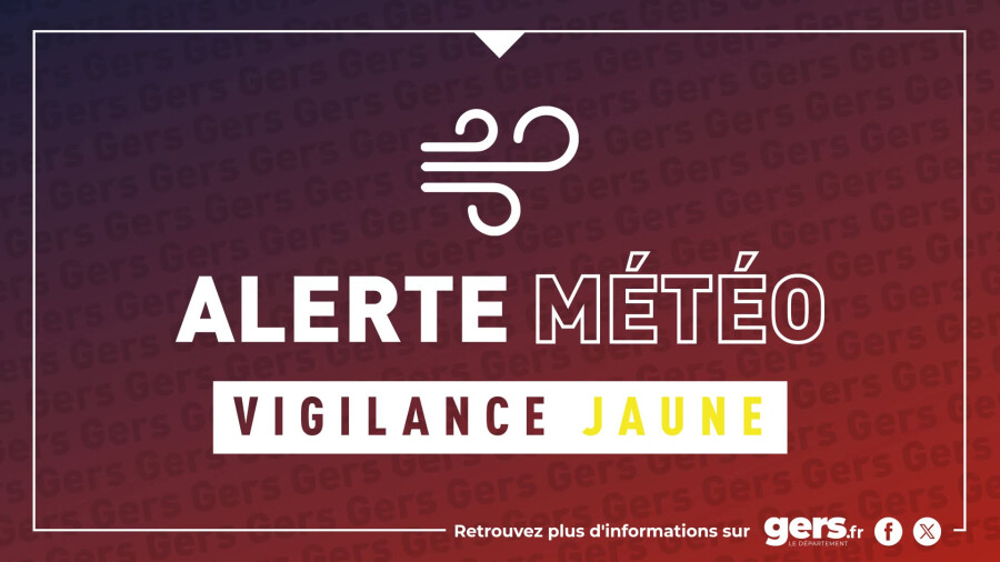 🌩 Gers le Département est placé en Vigilance Jaune Vent à compter de jeudi 23 octobre 6h jusqu'à 20h