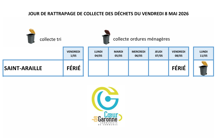 Le vendredi 8 mai 2026 étant férié, le rattrapage pour la collecte du tri se fera le lundi 11 mai.