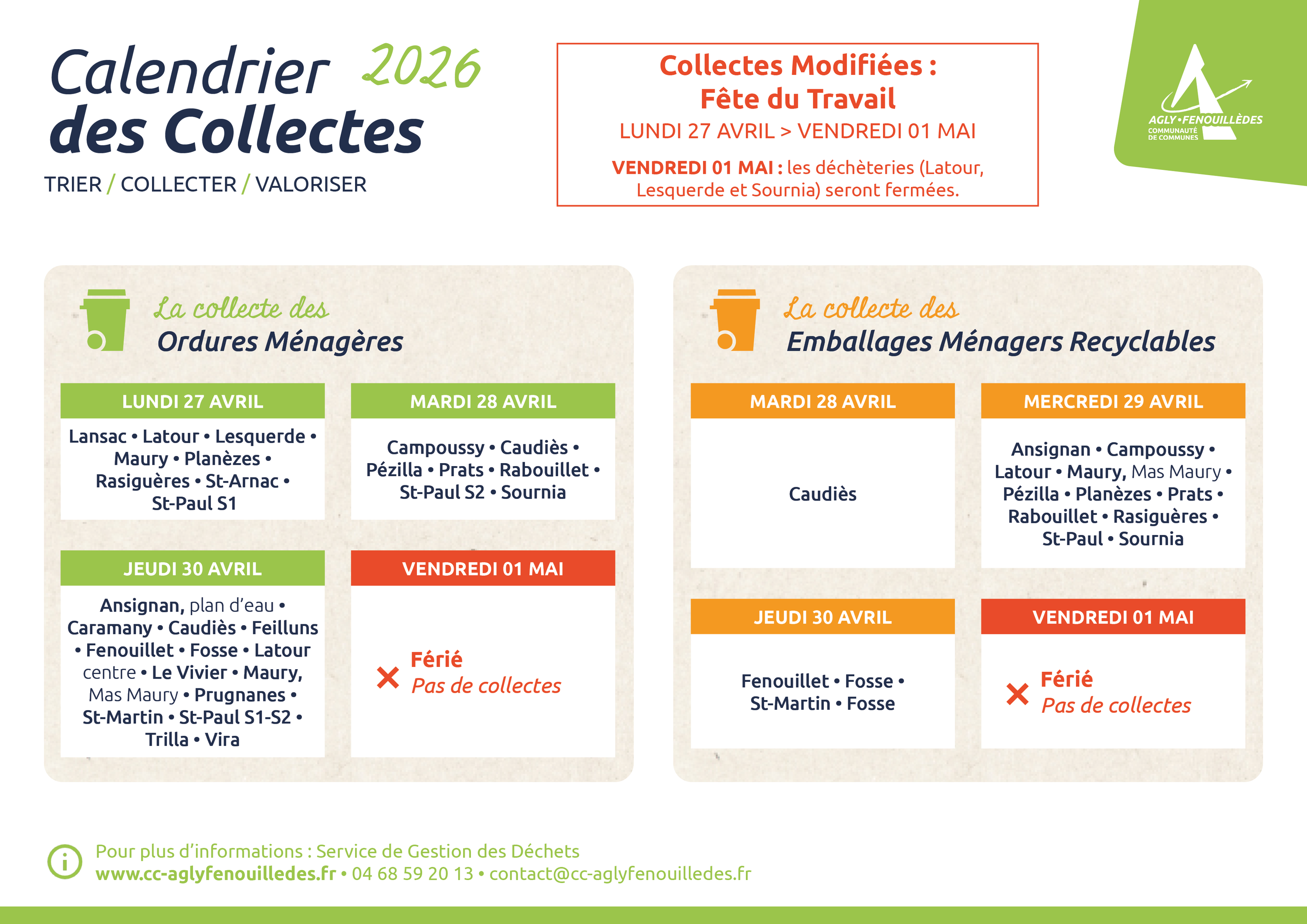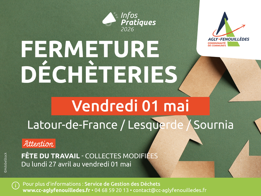 PAS DE COLLECTES - DÉCHÈTERIES FERMÉES (Latour-de-France, Lesquerde et Sournia)