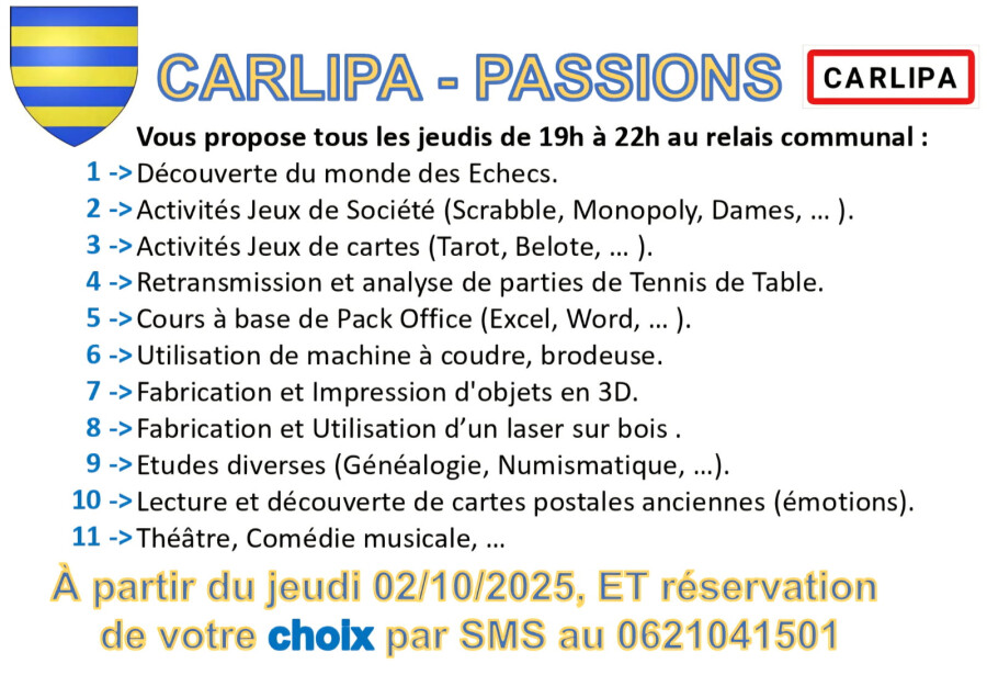 ♦️ 1er rendez-vous : mercredi 8 octobre, de 14h00 à 17h30, à Bram dans la salle du RDV(parking du collège).