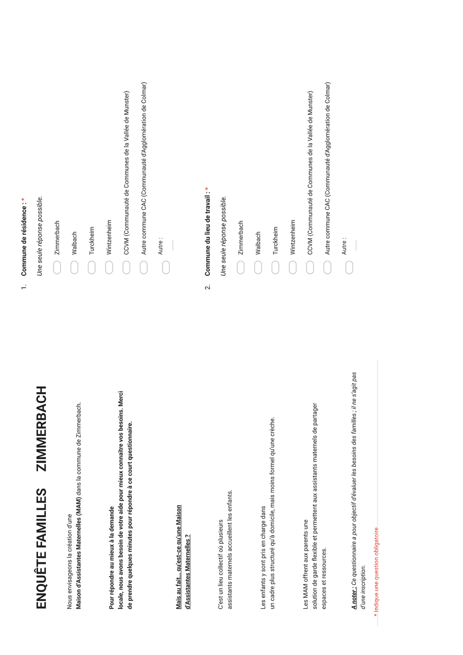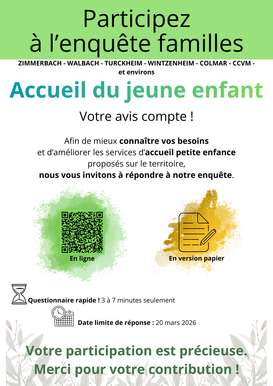 Un questionnaire est mis à disposition des familles afin de recueillir leur avis et leurs attentes. Nous invitons les parents concernés, actuels ou futurs, à y répondre.