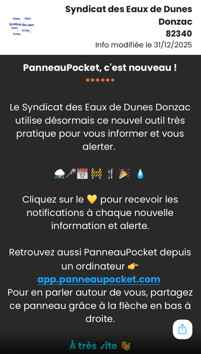 La commune est heureuse de mettre à disposition de ses habitants l’application PanneauPocket. Par cet outil très simple, elle souhaite tenir informés en temps réel les citoyens de son actualité au quotidien, et les alerter en cas de risques majeurs. Cette solution gratuite pour les habitants, sans récolte de données personnelles et sans publicité, permet d’établir un véritable lien privilégié entre le maire et ses citoyens.
