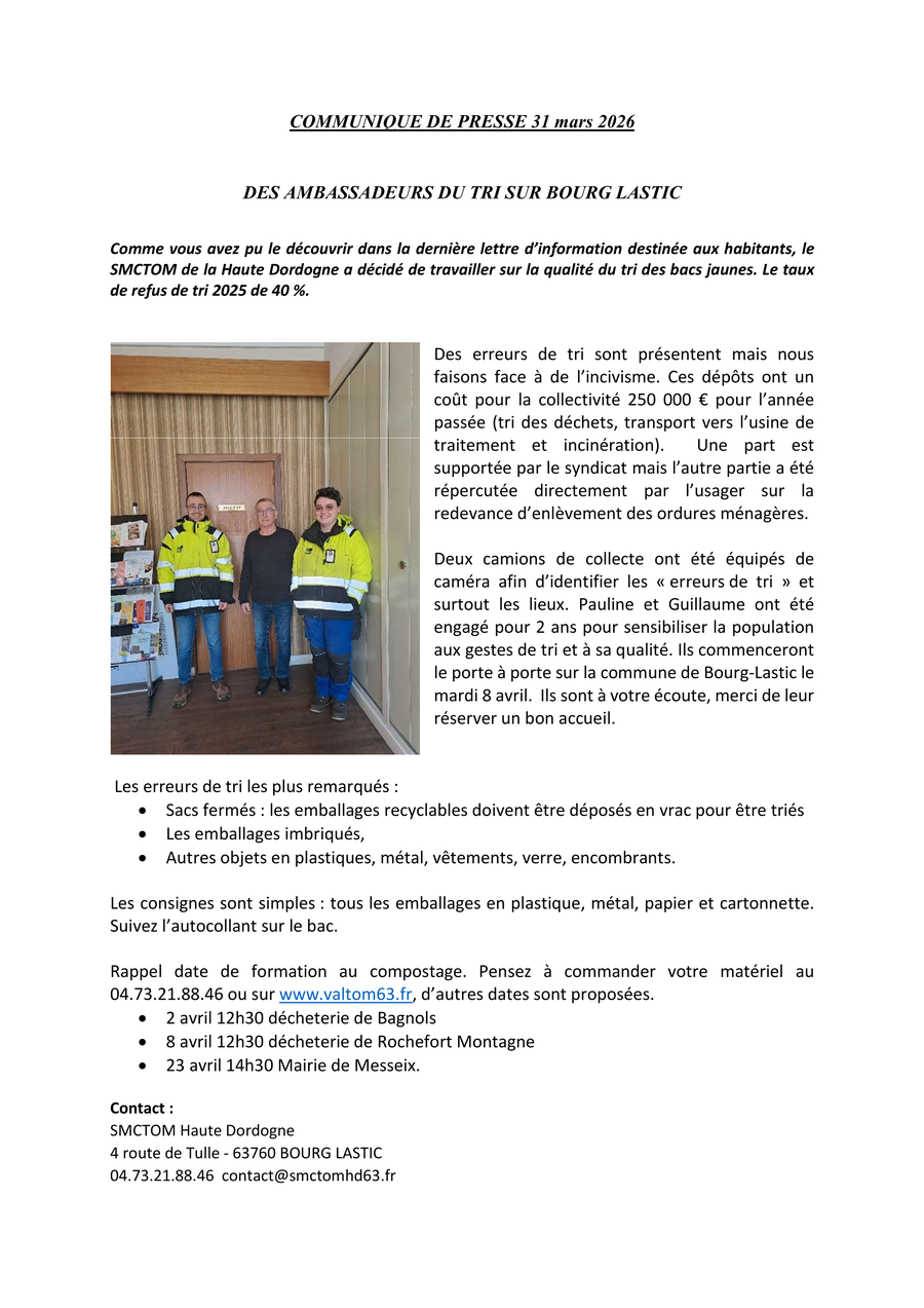 Consultez l'actualité des autres communes autour de Bourg-Lastic
