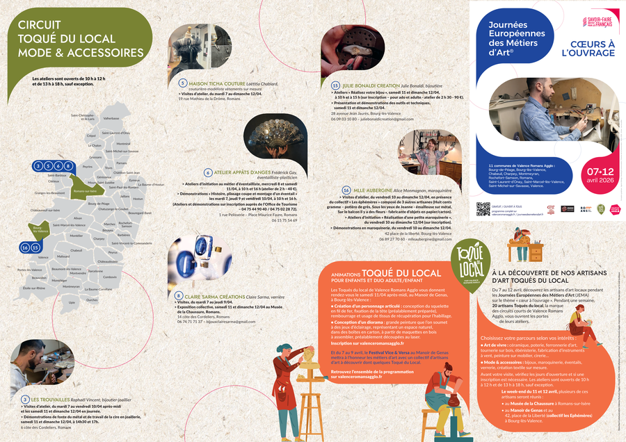Les journées européennes des métiers d’art débutent mardi 7 avril ! Jusqu'au 12 avril, 11 communes de Valence Romans Agglo s’animeront autour du thème 2026 : Cœur à l’ouvrage.